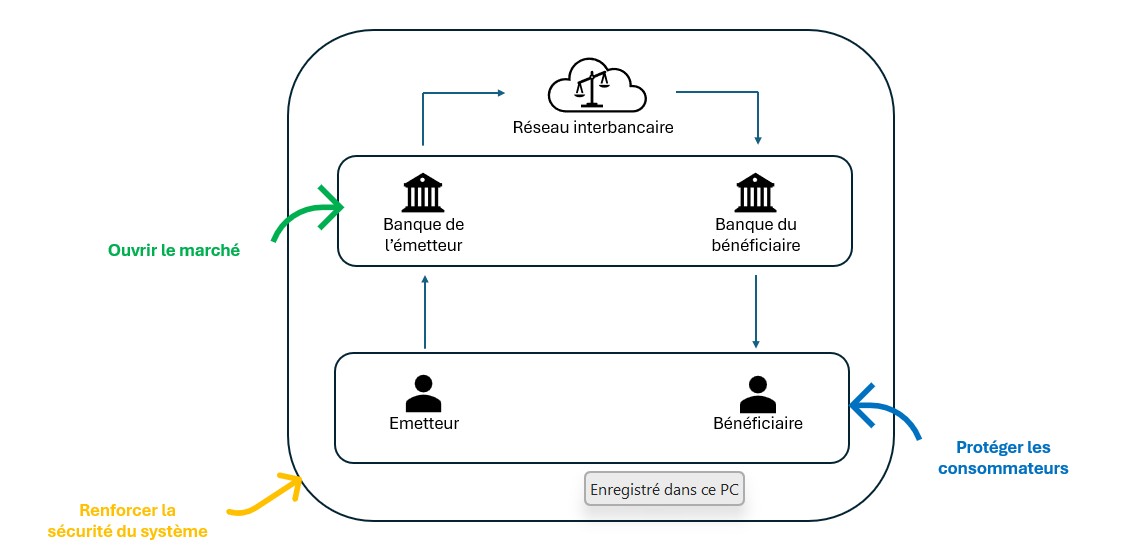 Obligation pour les banques de partager, via des interfaces sécurisées (API), les données des comptes bancaires de leurs clients avec les PSP tiers, sous réserve de leur accord (révocable à tout moment).